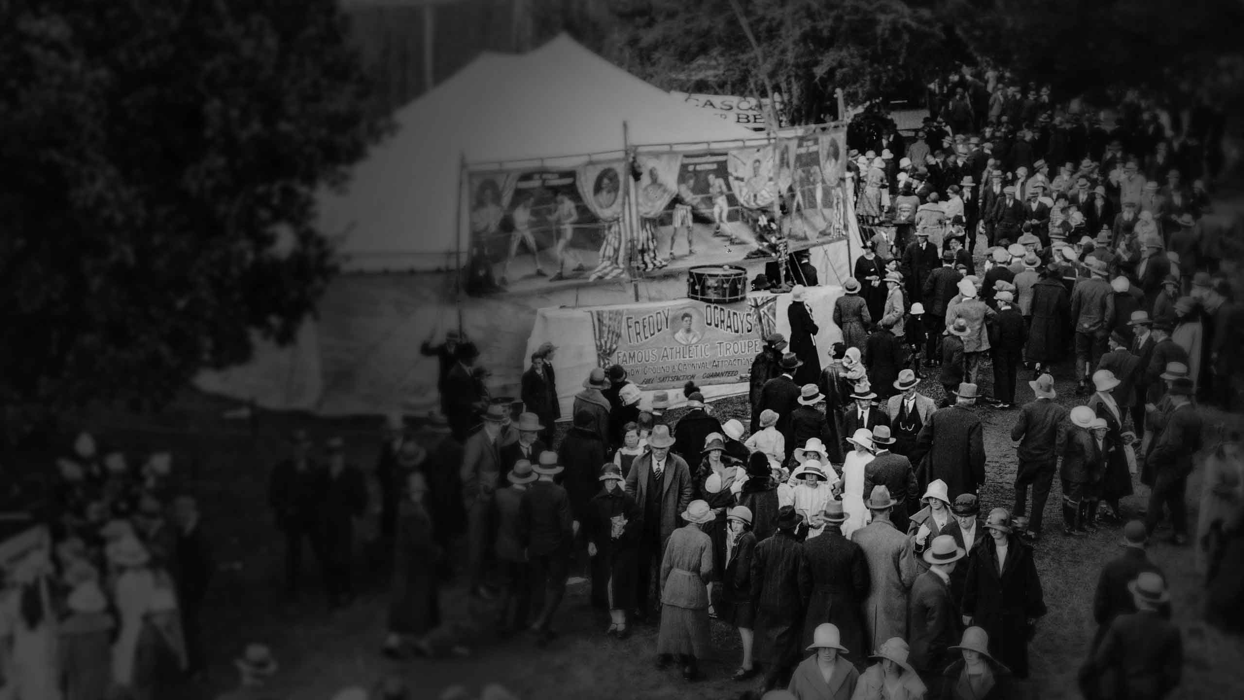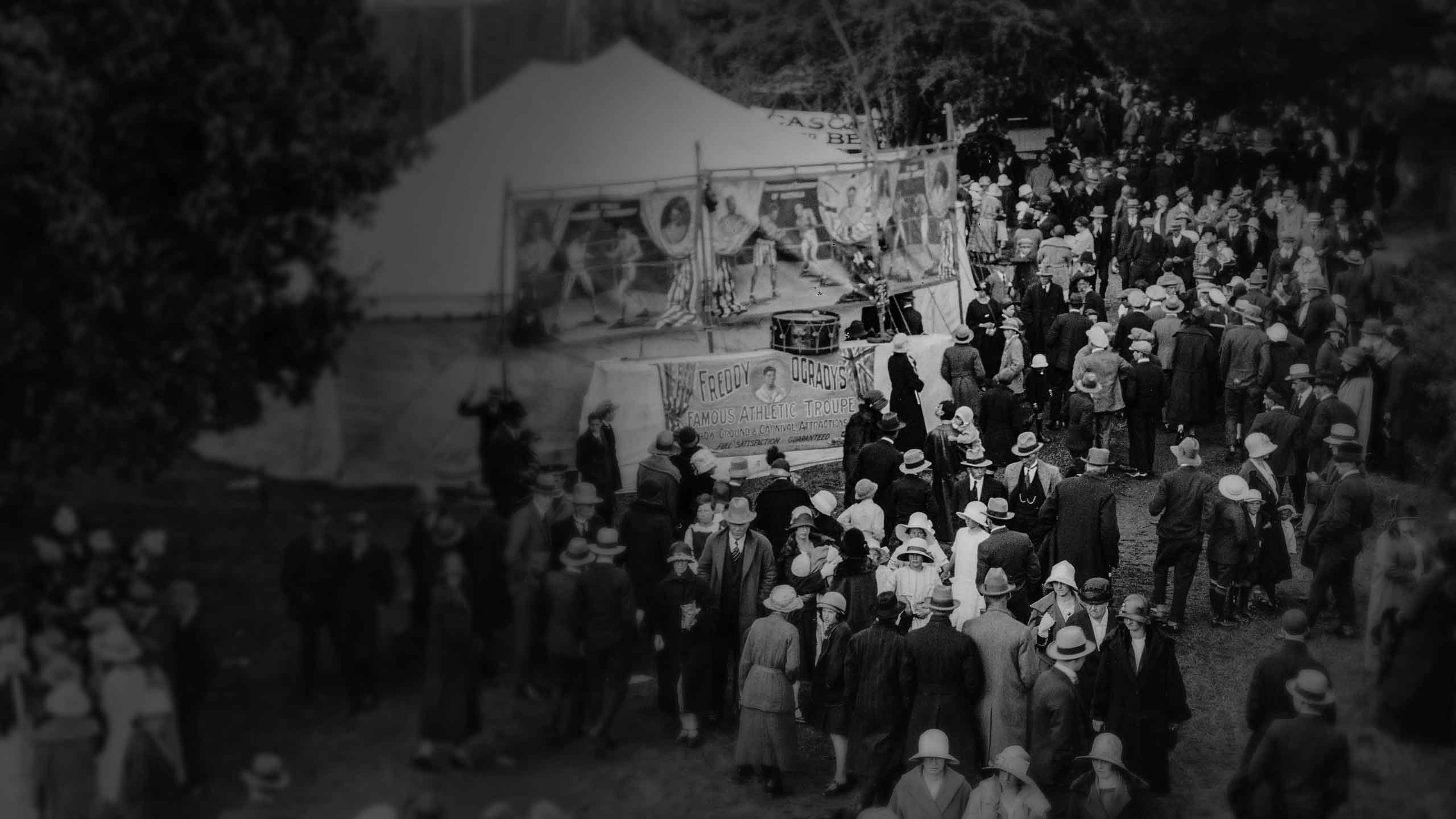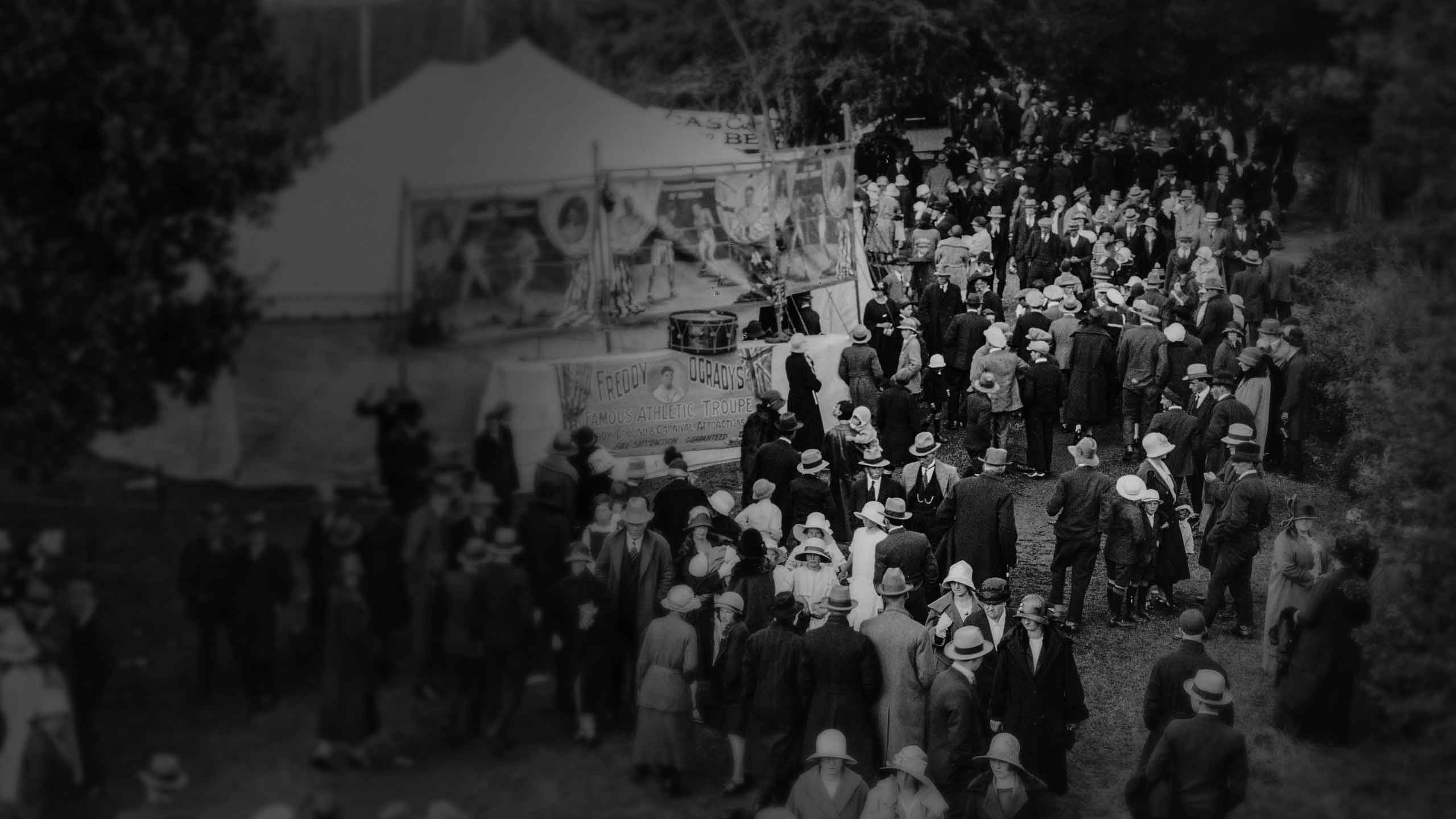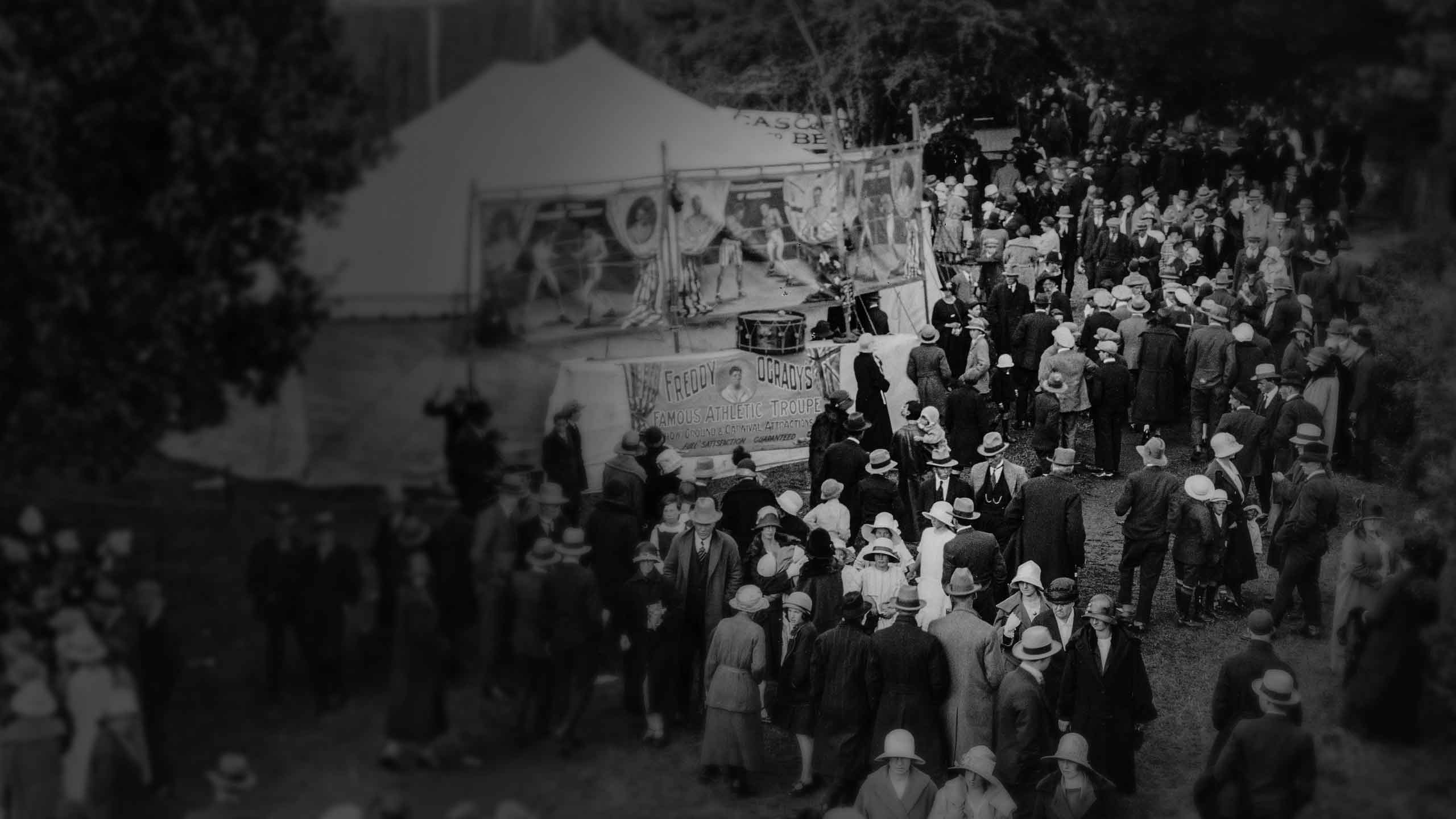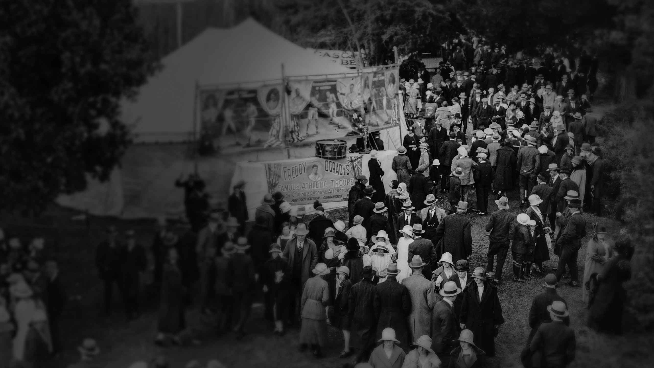 This image of a crowd of people at a country fair in Tasmania from the early 1900s makes for an interesting panorama.