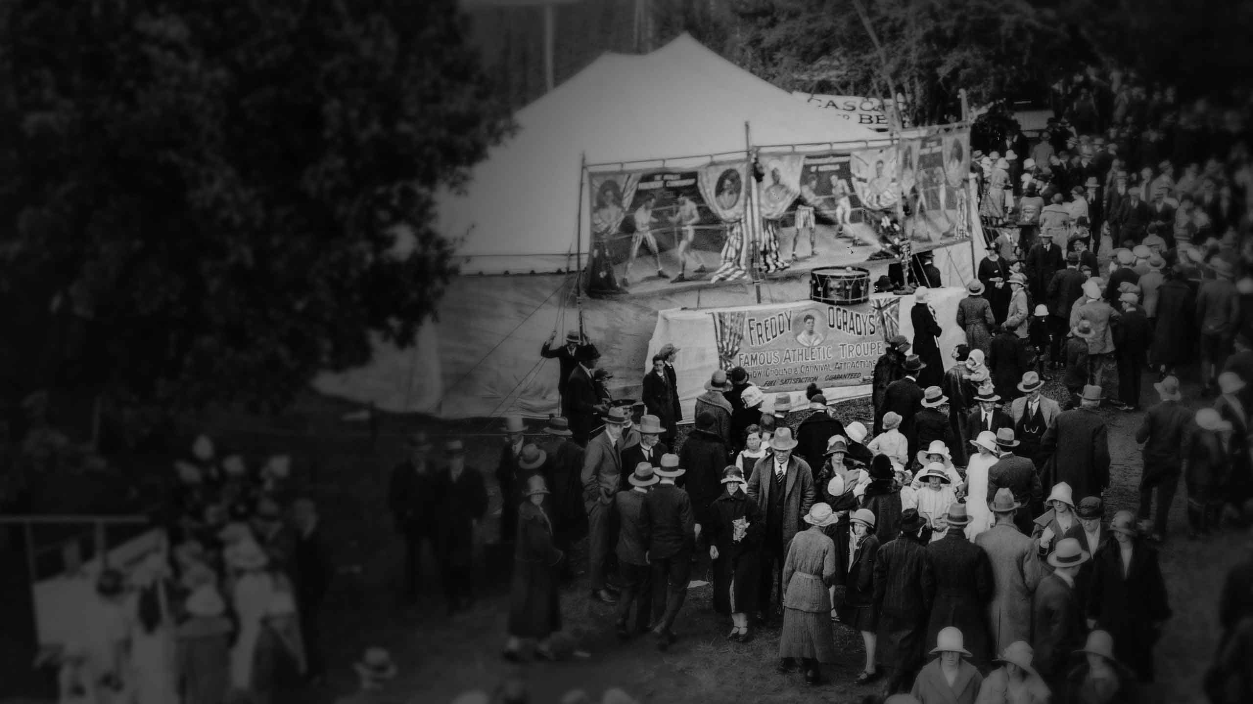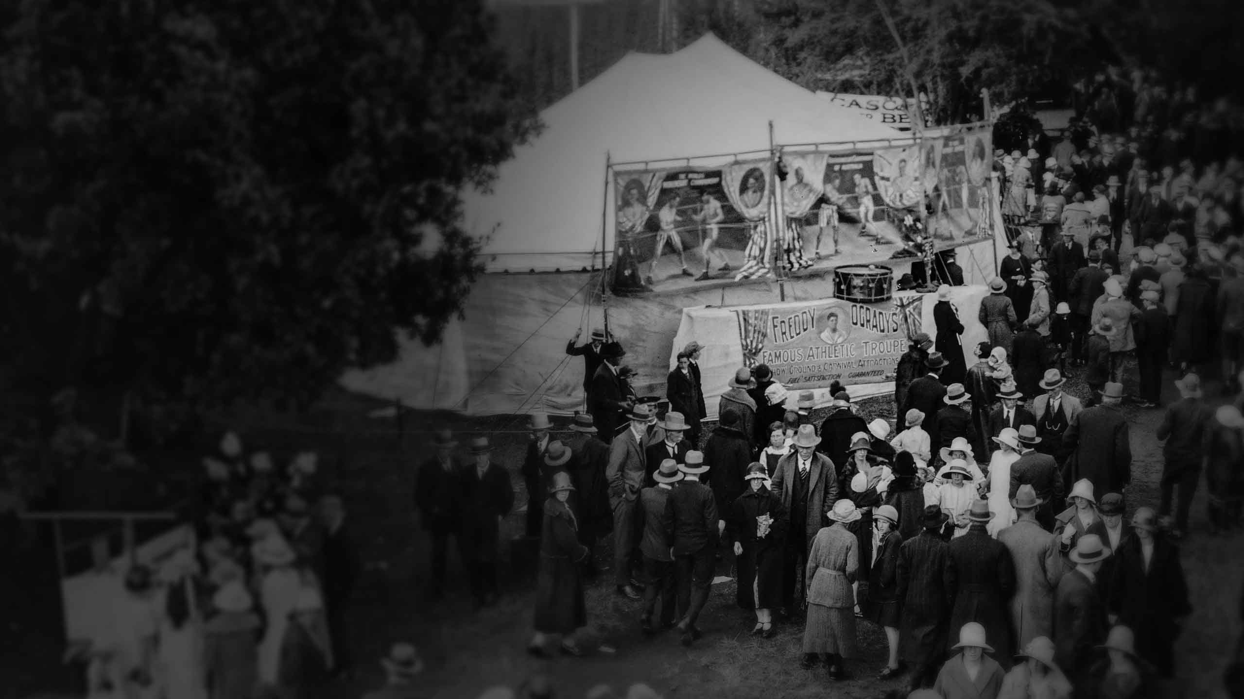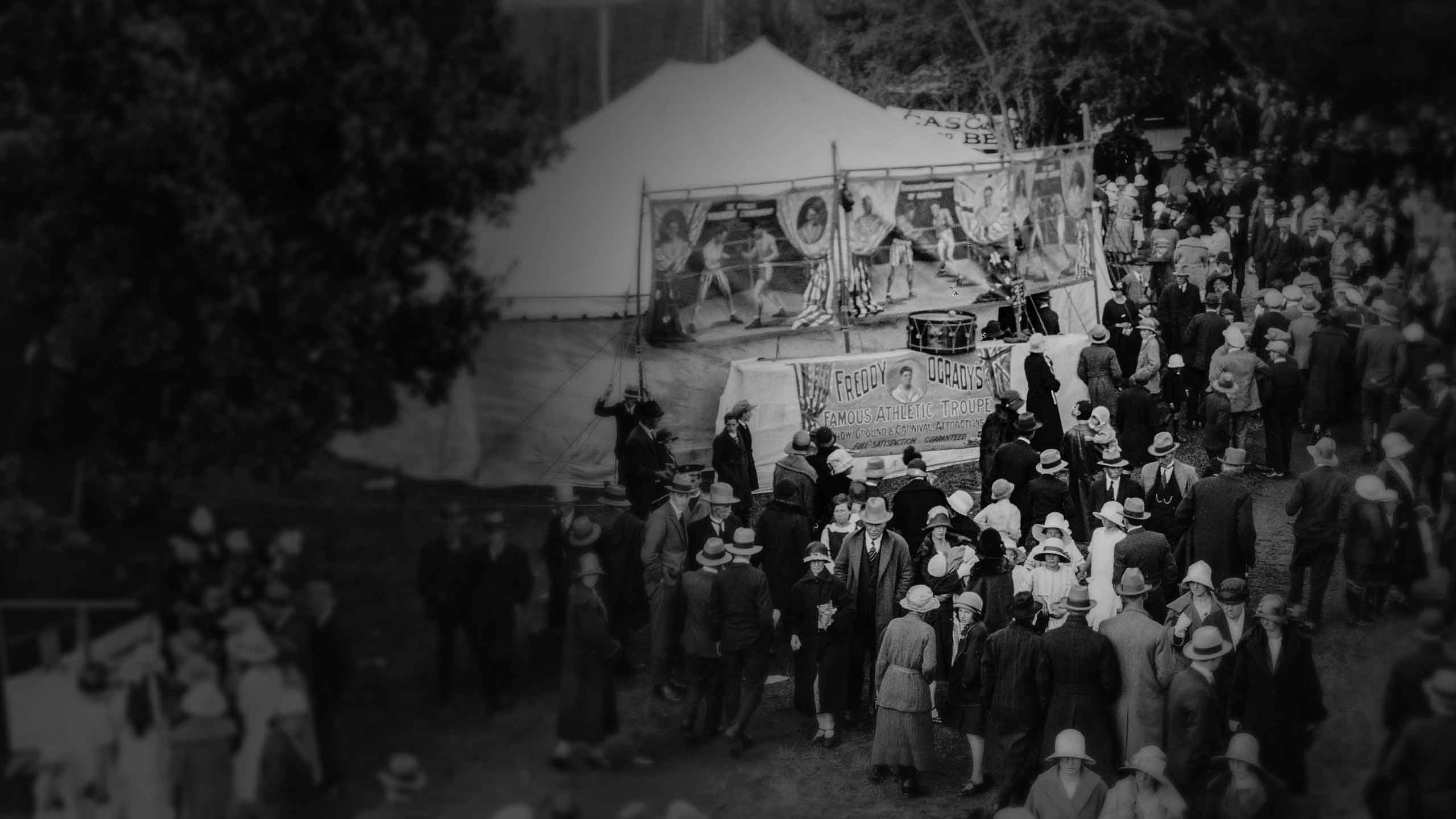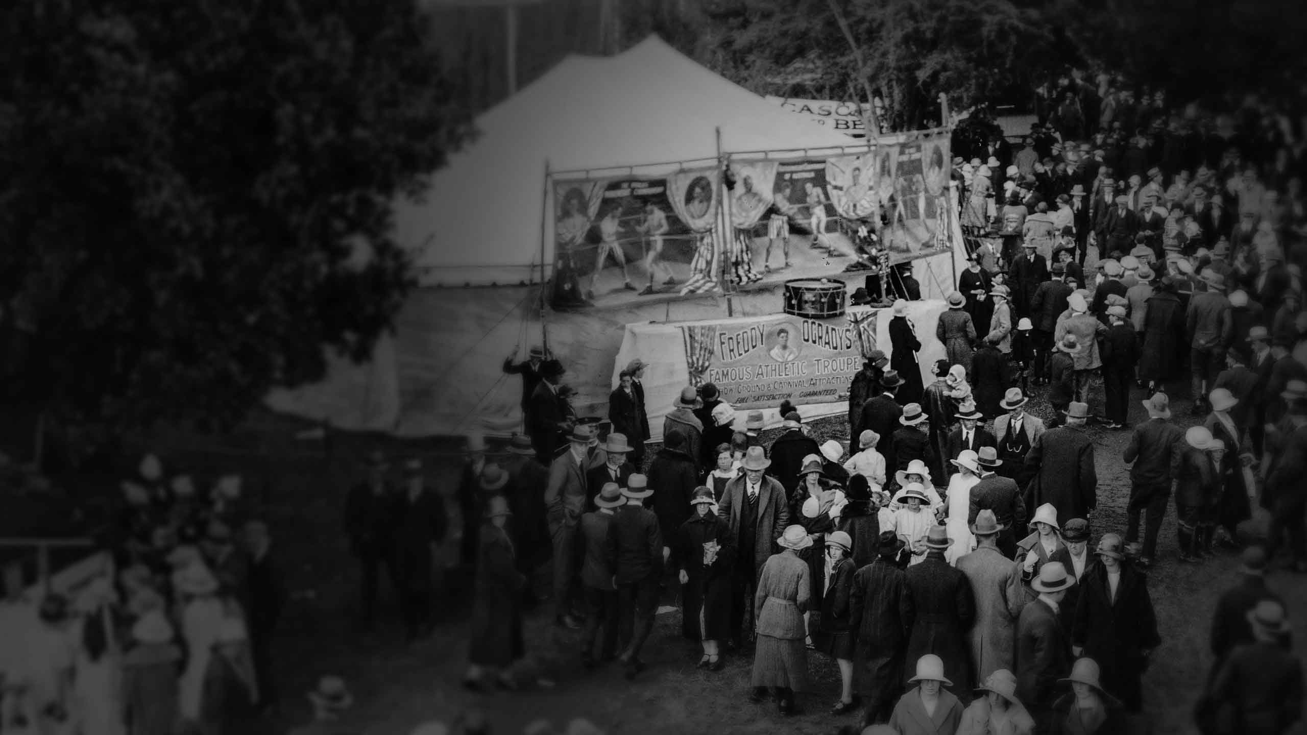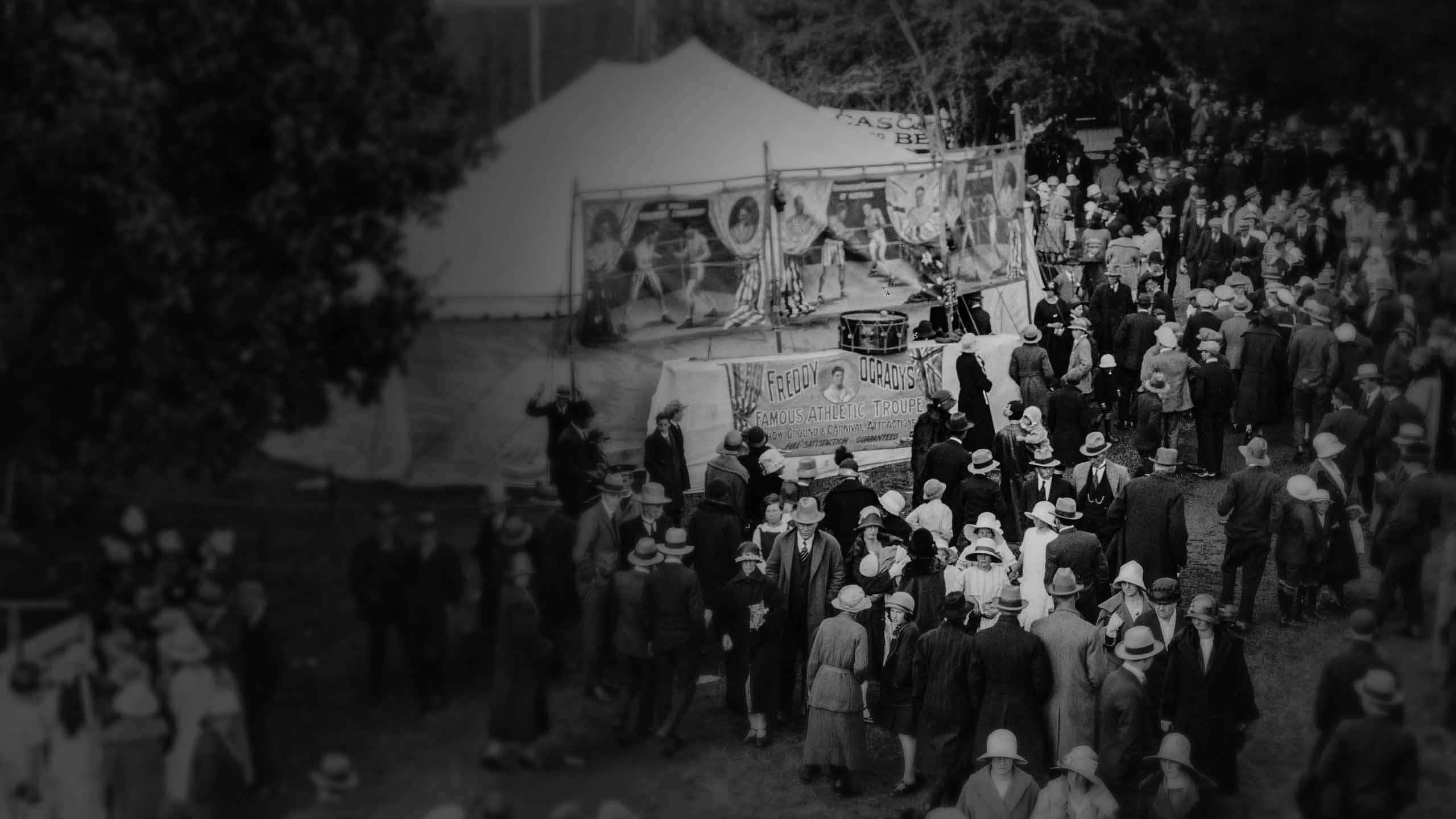 This image of a crowd of people at a country fair in Tasmania from the early 1900s makes for an interesting panorama.